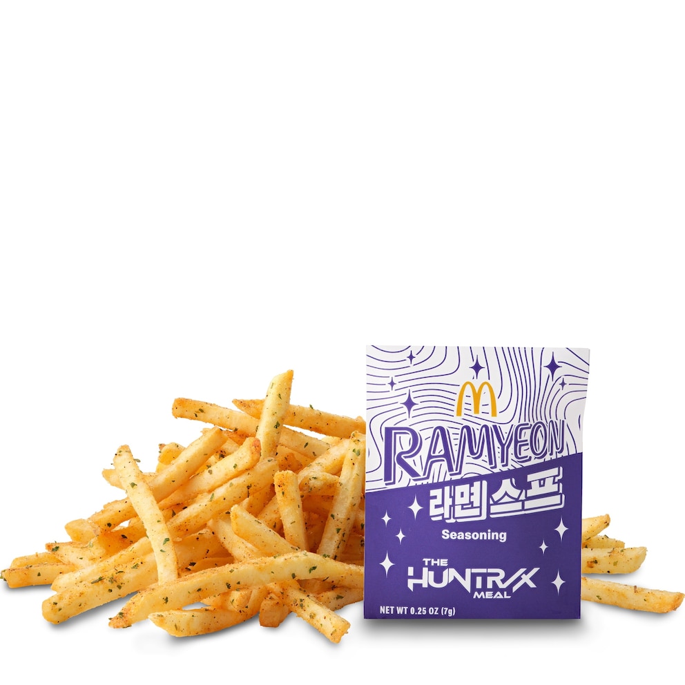 According to a press release, the Ramyeon McShaker Fries are a "spicy, umami spin" on McDonald's traditional fries, and feature a "soy, garlic, sesame and spice seasoning -- inspired by Rumi, Mira and Zoey's go-to snack" in the film.