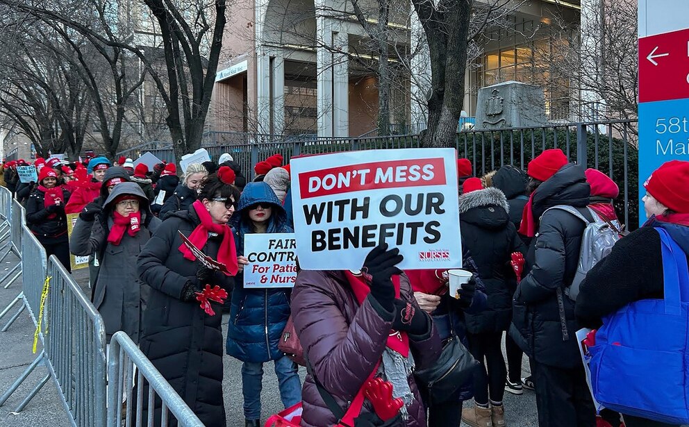 Mamdani also said nurses are not asking for millions, but for "pensions to be safeguarded, to be protected in their own workplace, and to receive the pay and health benefits they deserve."