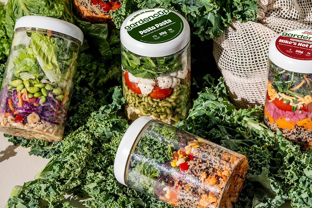 Get salads delivered in a cup! Consider this lunch, simplified. They are ready-to-eat with fresh ingredients, like a Caesar salad with grilled chicken or a wedge salad with steak. Choose your pack size, schedule and keep them stocked in the fridge before taking one out for lunch.