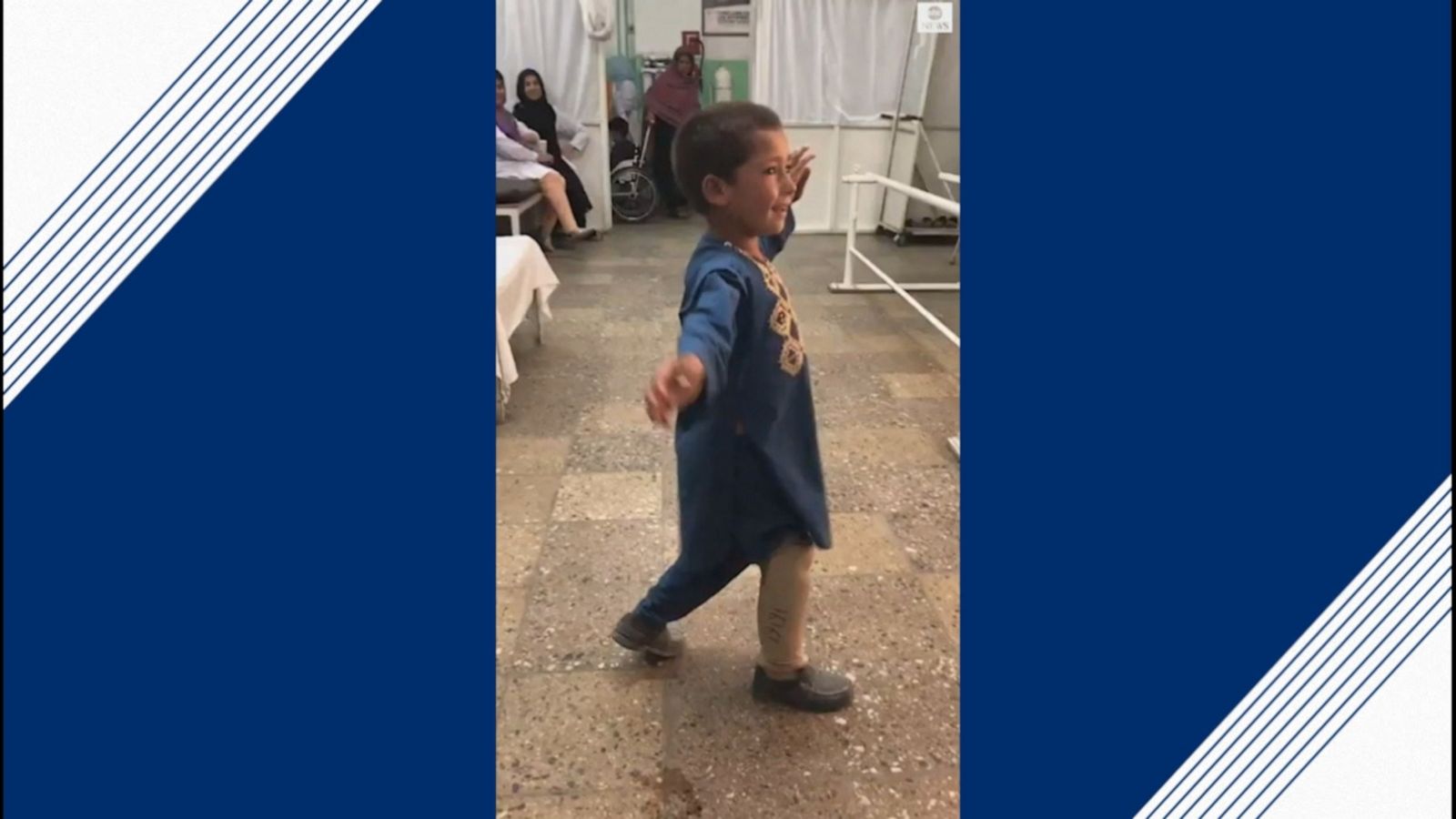 This smiling six-year-old lost his limb when he was two years old as a result of the conflict between the Taliban and Afghan security forces.