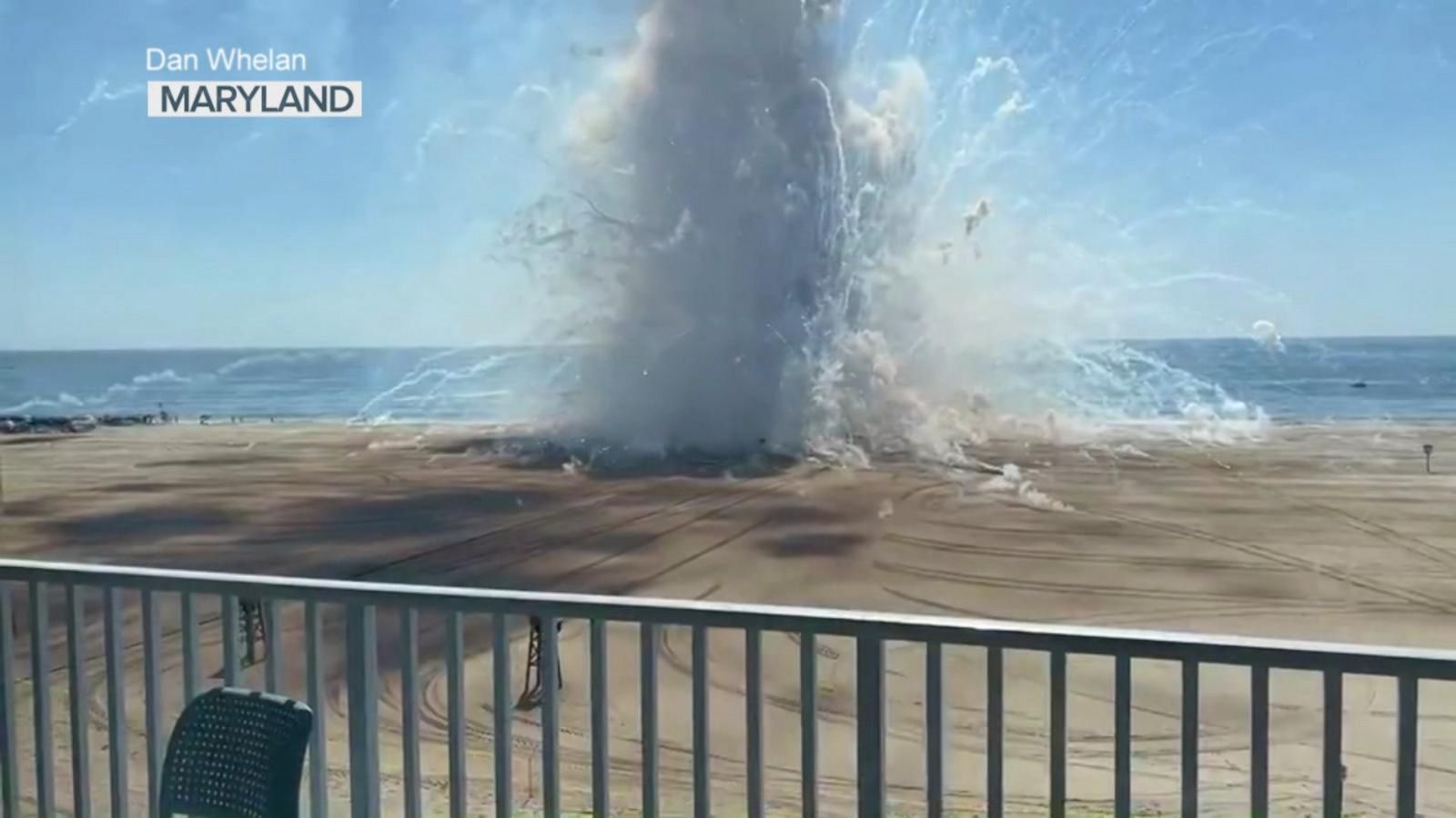 Footage shows a fireworks display going off hours before scheduled, presenting danger even for professional handlers.