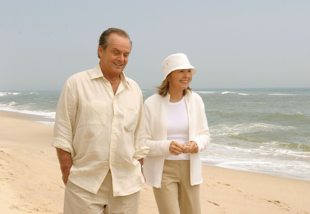 In the film, Keaton plays Erica Barry, a playwright in the Hamptons, while Nicholson plays Harry Sanborn, a wealthy New York City record company owner. Despite clashing personalities, the two find themselves forced together and eventually begin to develop feelings for one another.
