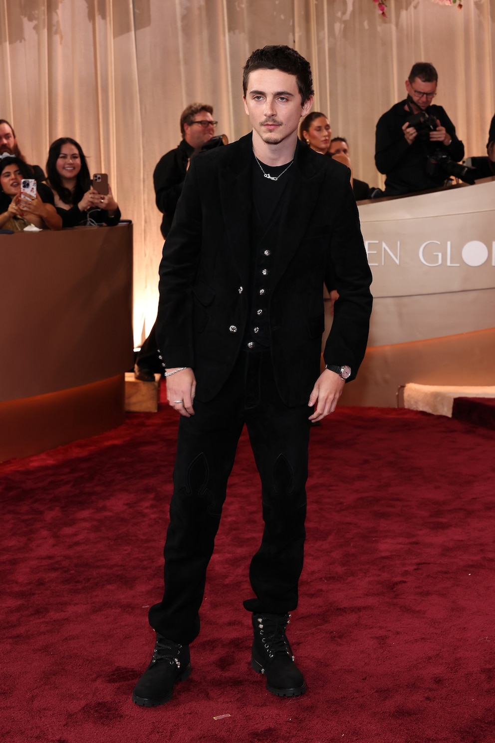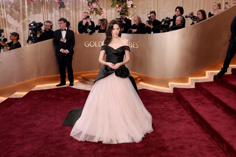 Men are also pulling out all the stops when it comes to their red carpet game. Colman Domingo, who is presenting tonight, hit the carpet in a black suit with silver embellishments, while "White Lotus" star and Golden Globe nominee Walton Goggins paired his suit with a metallic gold shirt and black tie.