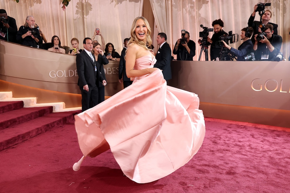 Some women, like Golden Globes host Nikki Glaser, incorporated color into their gowns: pinks, purples and yellows.