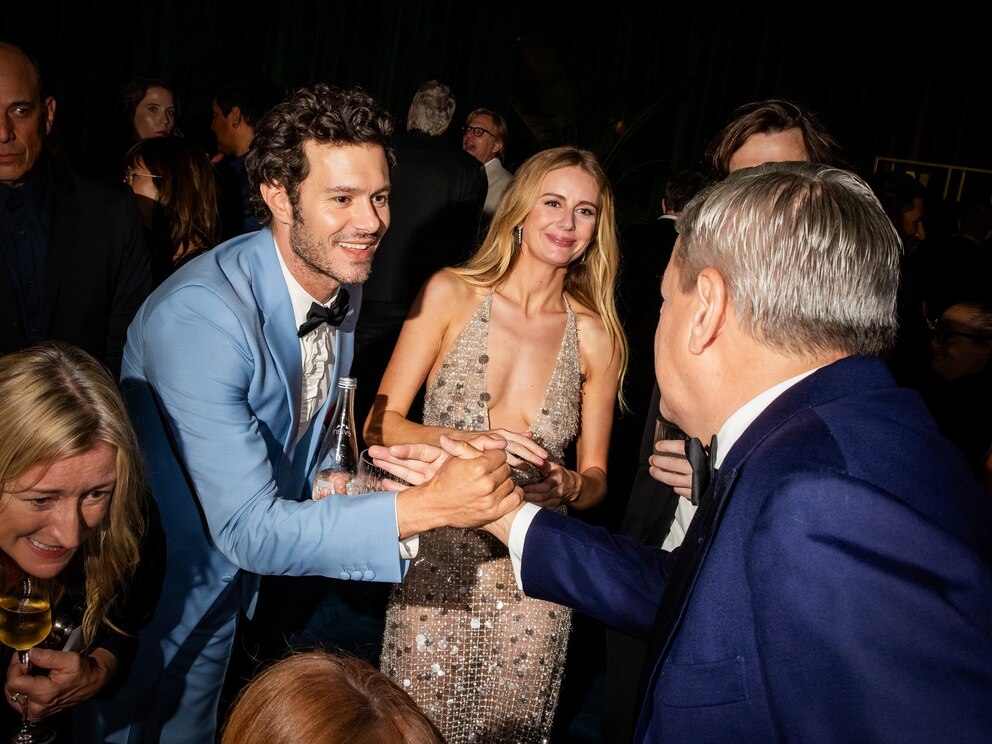 Adam Brody, the Emmy-nominated star of "Nobody Wants This," which returns for season 2 on Oct. 23, was seen in a baby blue suit at the after-party for the streaming company.