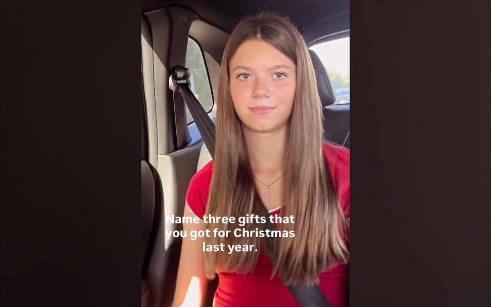 In the brief clip, Dahms asks her 13-year-old daughter Brinley to name three presents she received for Christmas last year.