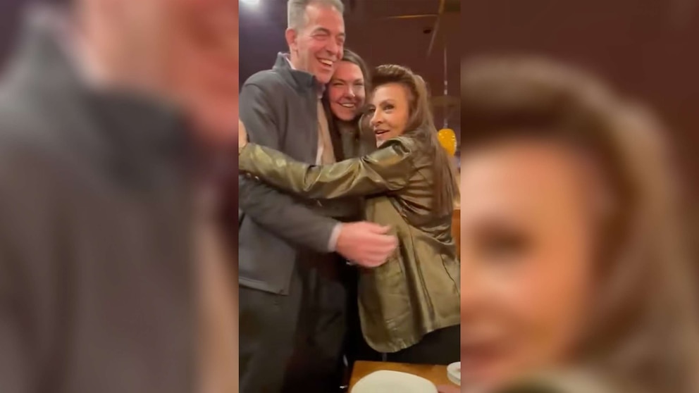 After more back and forth, Teige Zeller tells her parents to look to their right, as she walks over to their table.