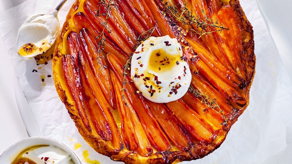 Place the chilled pastry over the carrots and bake for 20–25 minutes or until the pastry is puffed and golden.