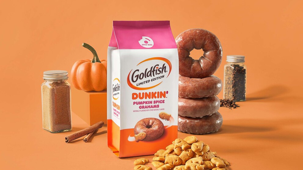 Goldfish has partnered with Dunkin' for the first time ever to release new limited-edition Pumpkin Spice Grahams.