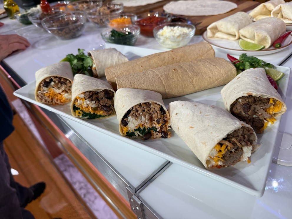 Buck, who said he regularly cooks breakfast burritos for his two sons, tried his hand at Churchill's simple "pull and tuck then fold it in" method, which improved greatly on the second attempt.