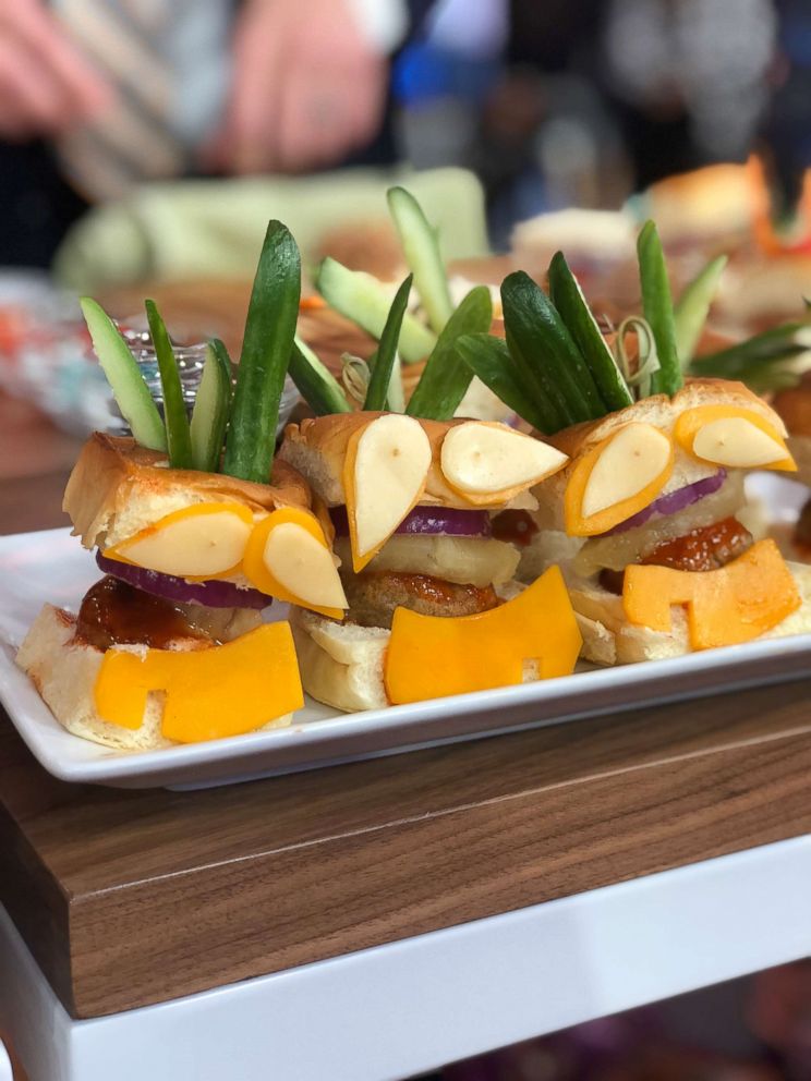 The sliders featuring the brand's rolls and BBQ sauce and the character Menehune from "The Legend of Hallowaiian" movie put a festive spin on the standard slider.