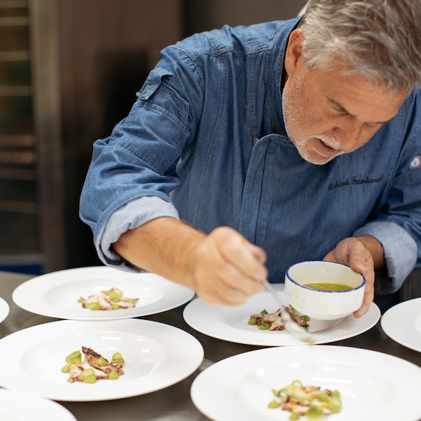 Make the Aguacate Chile: In a blender, add water, avocados, serrano chiles and bouillon. Blend until smooth. Set aside.
