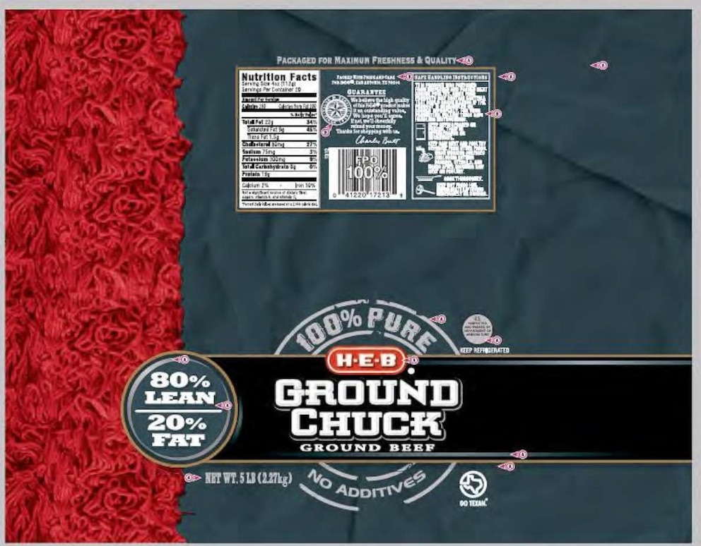 The three recalled items include 5- and 10-pound packages of Hill Country Fare ground beef 73% lean/27% fat with a best before or freeze by date of Nov. 25, 2022, and 5-pound containers of H-E-B Ground Chuck Ground Beef 80% lean/20% fat.