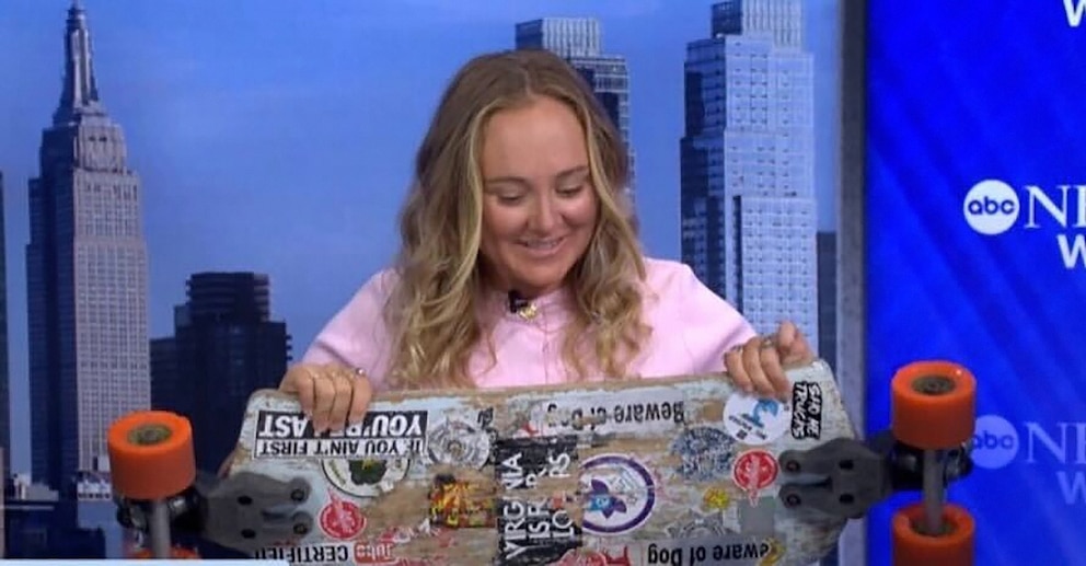 1st woman to skateboard across US raises $50K for spinal cord injury research