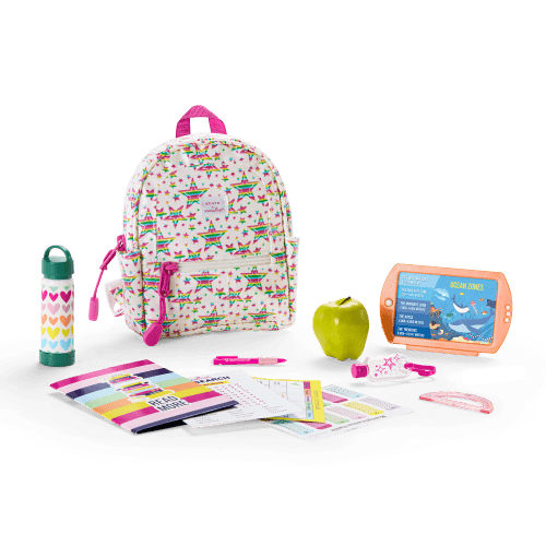 Lila has amber eyes and caramel-colored hair fashioned in two half ponytails. She will come with a wardrobe including a glittery pink tank and track pants, colorful sandals, bracelets and hairbands. American Girl is also releasing Hollyhock the horse as part of Lila's product world, with a detailed saddle and bridle and numerous accessories to style her extra-long mane.