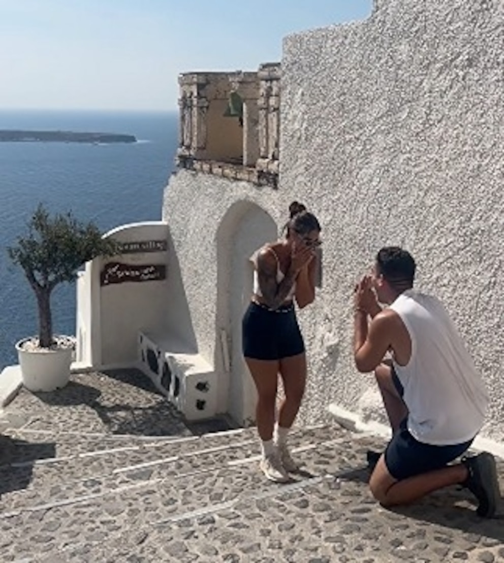 "Our dream Santorini proposal accidentally turned into a candy bar ad," Melani wrote in the video's caption.
