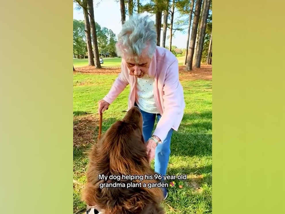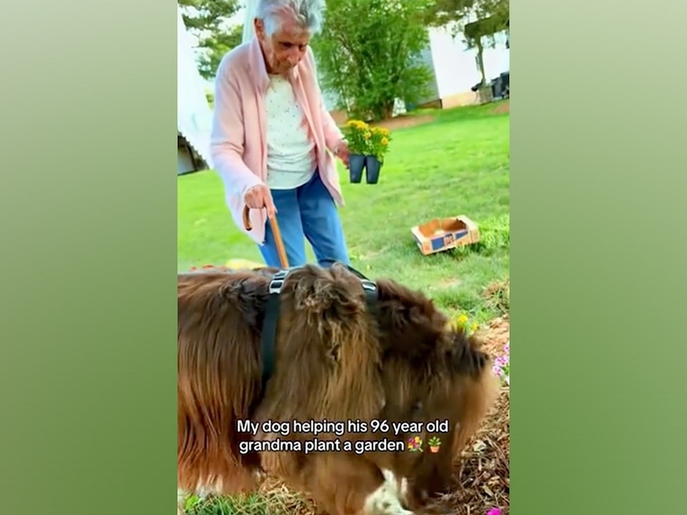 A Newfoundland named Chewbacca is going viral for helping his 96-year-old great-grandmother garden.