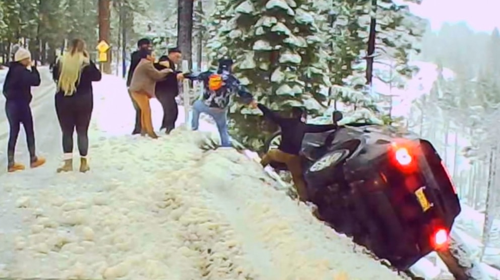 A good Samaritan is speaking out after rescuing a couple and their two dogs on Christmas Day following a snowy car crash in California.