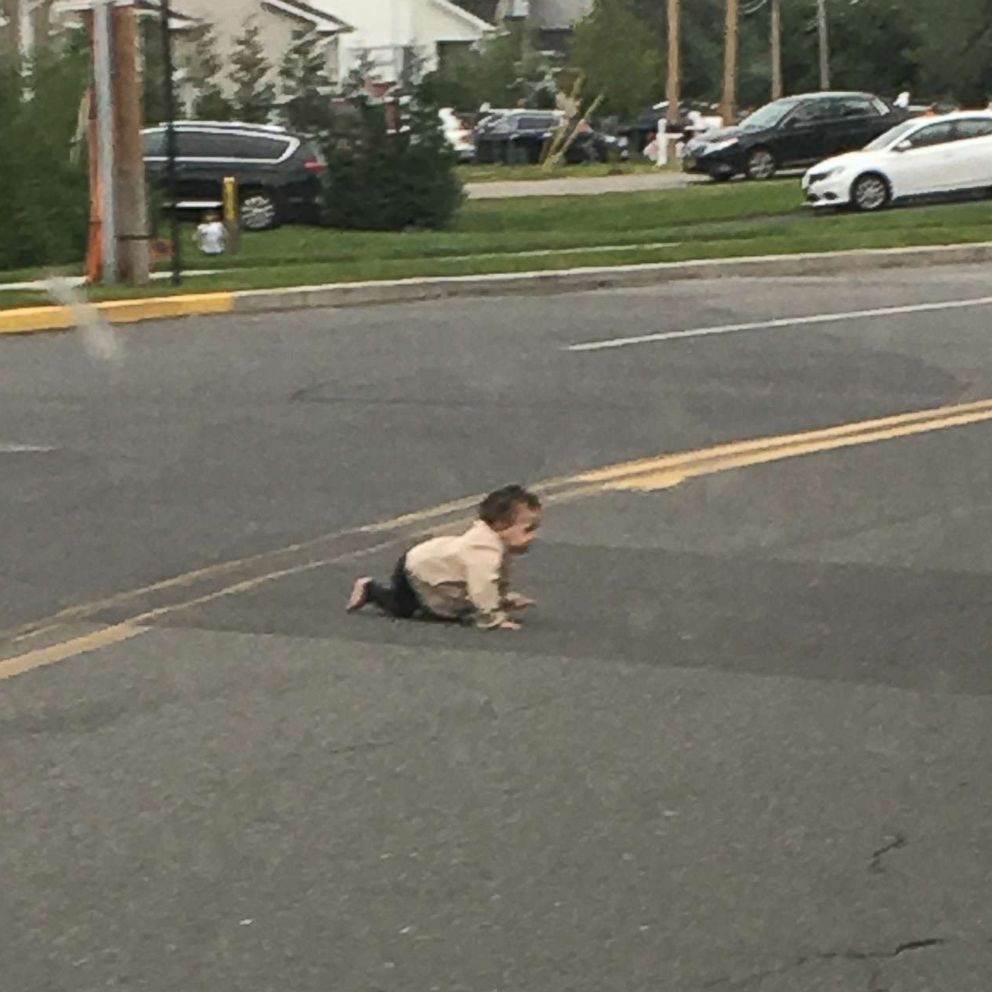 Brittingham then can be seen gesturing to stop oncoming traffic with one arm as he hurries toward the two children, picks them up one by one and carries them to a nearby sidewalk.