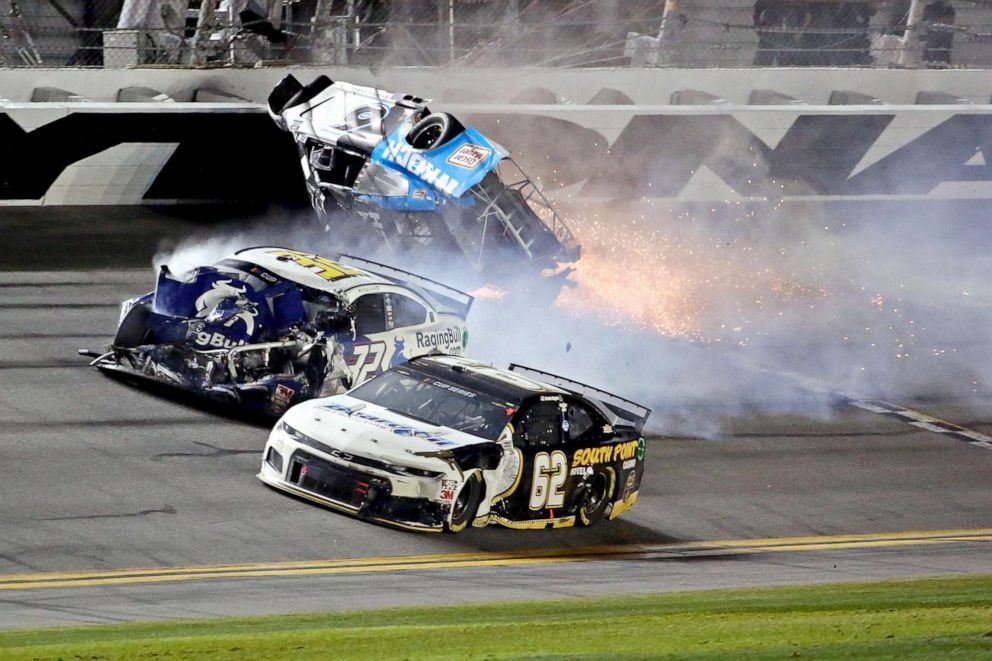 Newman was leading the race when he skidded out, slammed into a wall and flipped over. He was then struck by at least one car from behind, which caused his car to fly into the air, slide on its roof and catch fire while still upside down.