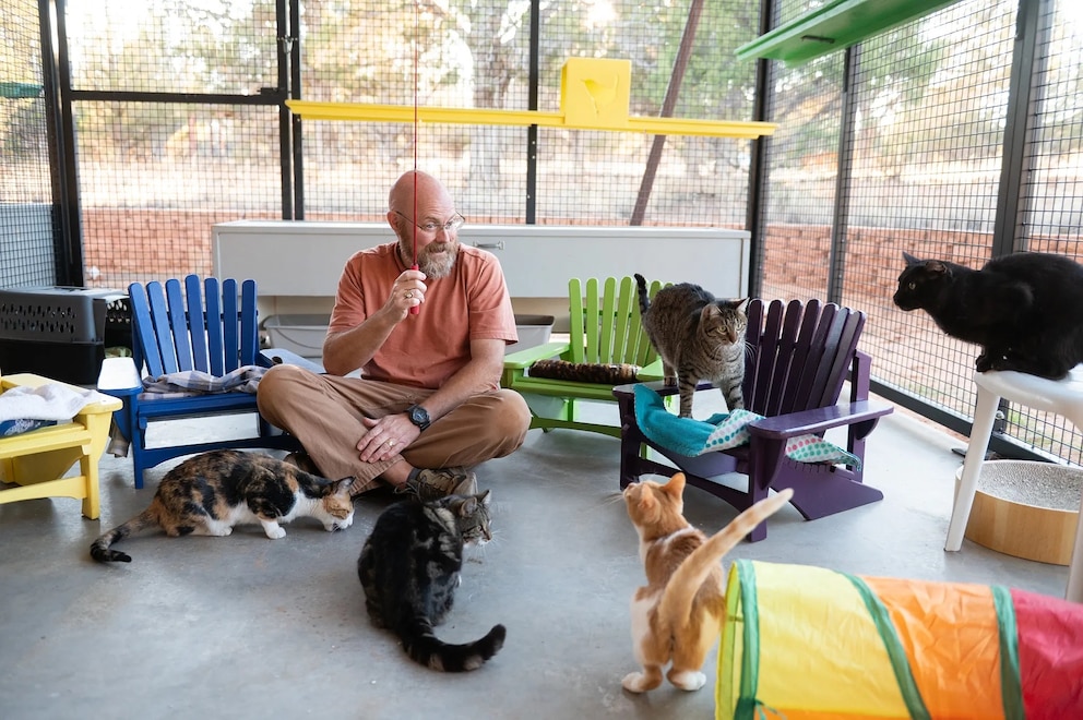 At first, he said he made some chairs for his cats at home from leftover lumber. He said his wife later suggested he make them for the felines at the sanctuary where they both volunteered.