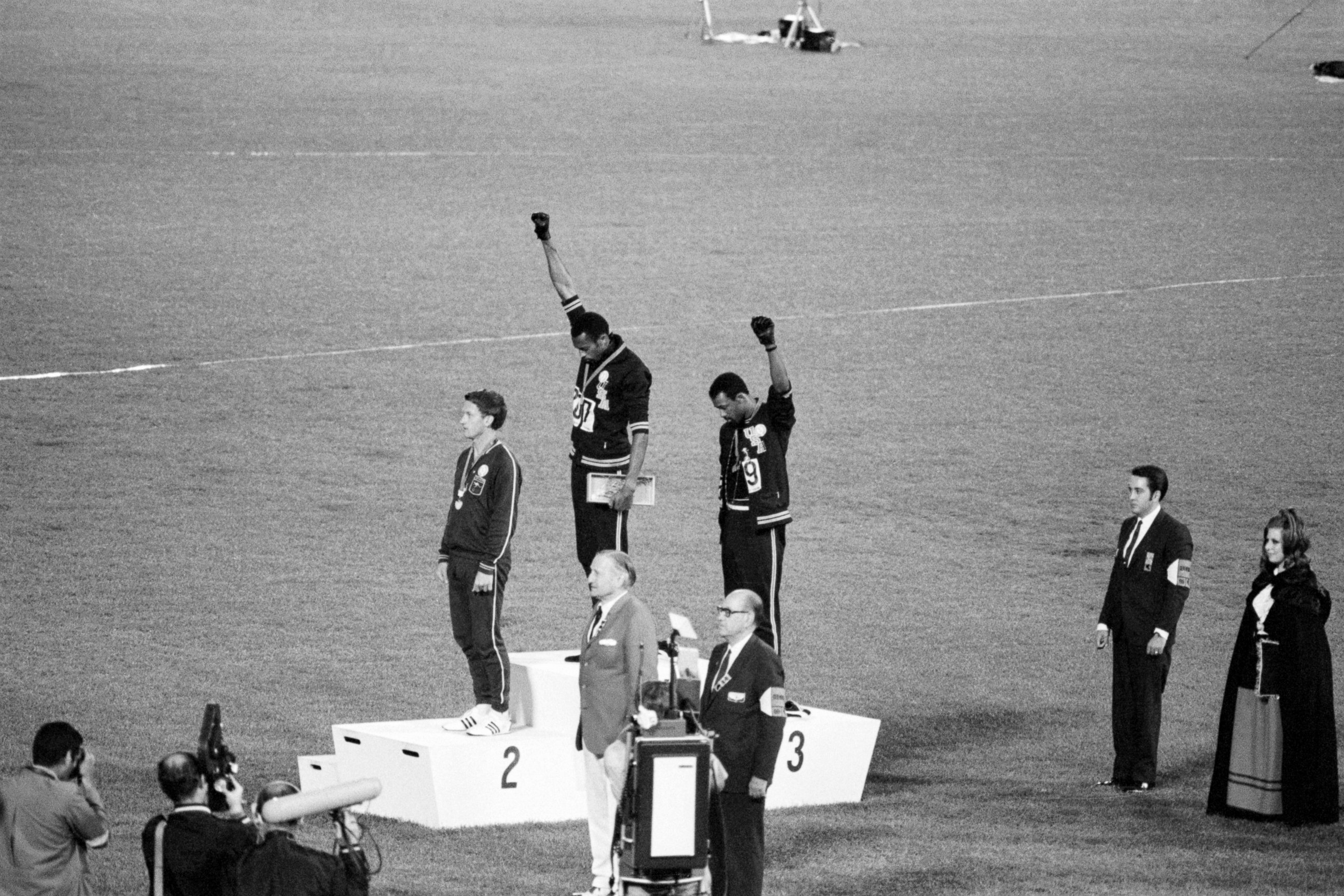 Gold Medalist Tommie Smith's appearance at the 1968 games in Mexico resulted in one of the most iconic Olympic photos of all time, symbolic of the civil rights movement at the time.