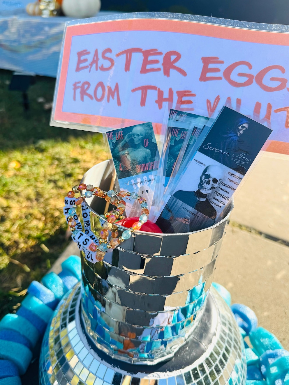 Soukup said many visitors have stopped by already by just to get a glimpse of the ghoulish Swift display, and she loves sharing custom album cover bookmarks and trading "showghoul" bracelets and pictures with them.