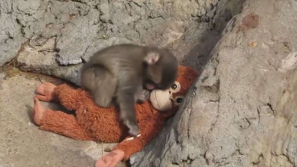 Yasunaga explained, "When Japanese macaques are born, they have a natural instinct to try and cling to something. The zookeepers were trying to figure out what they could get him to grasp, trying out all sorts of different things."