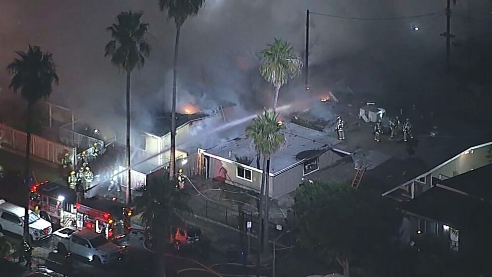 A gas leak was identified at one of the homes, prompting a response from the gas company. The Los Angeles Department of Water and Power was also called to manage live electrical wires that had fallen behind the initial three properties.