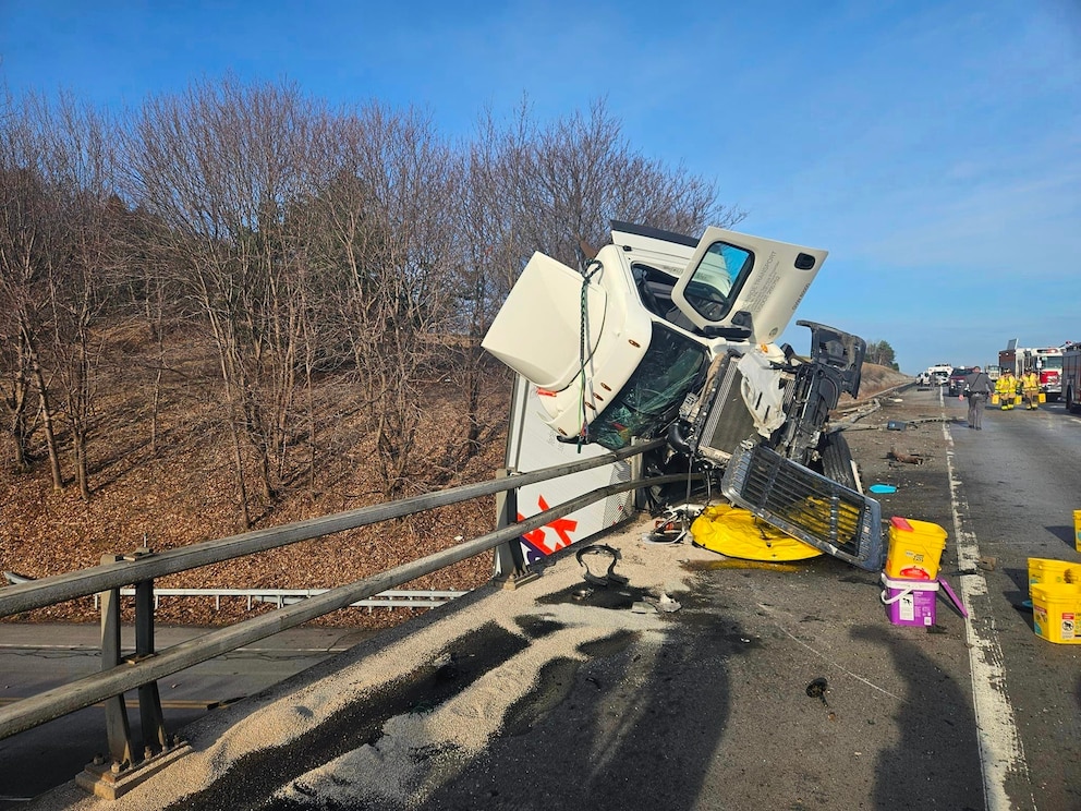 The terrifying incident took place before 8:30 a.m. on an I-90 bridge near exits 45 and 46 above Pittsford Mendon Center Road, Henrietta Fire Chief Mark Cholach said during a media briefing. New York State Police said the semitrailer sideswiped a vehicle.
