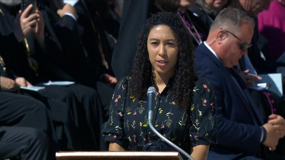 LONDON -- American Kielce Gussie, who works as a journalist at Vatican News, did the first reading in English -- several verses from the Acts of the Apostles -- at the funeral of Pope Francis on Saturday.