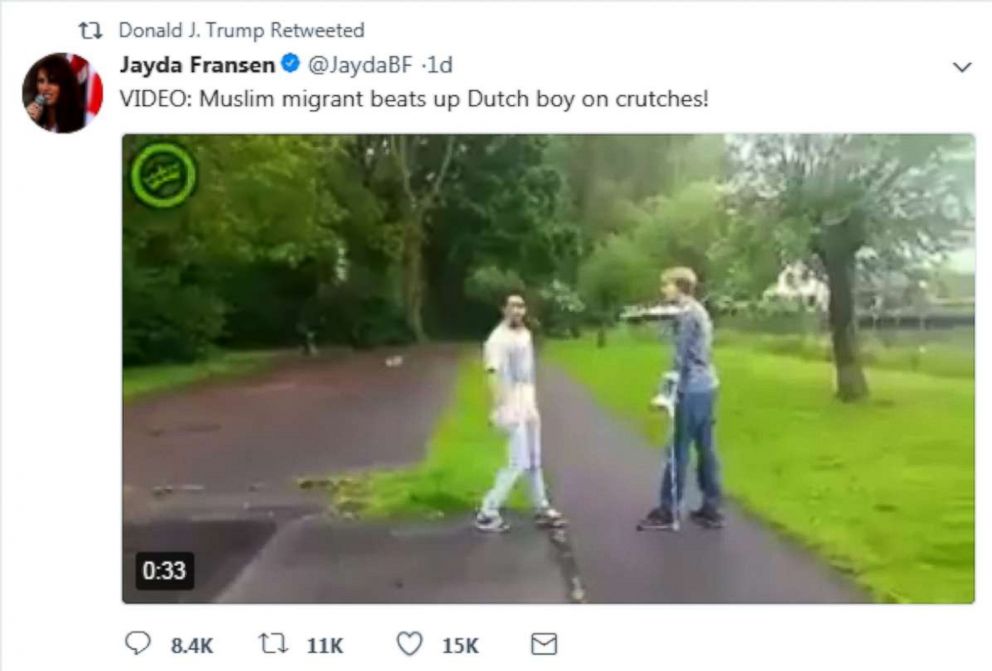 — -- President Donald Trump sparked swift backlash after he retweeted three videos containing anti-Islamic content from a leader of a far-right British political group on Wednesday morning. But where did the videos actually come from?