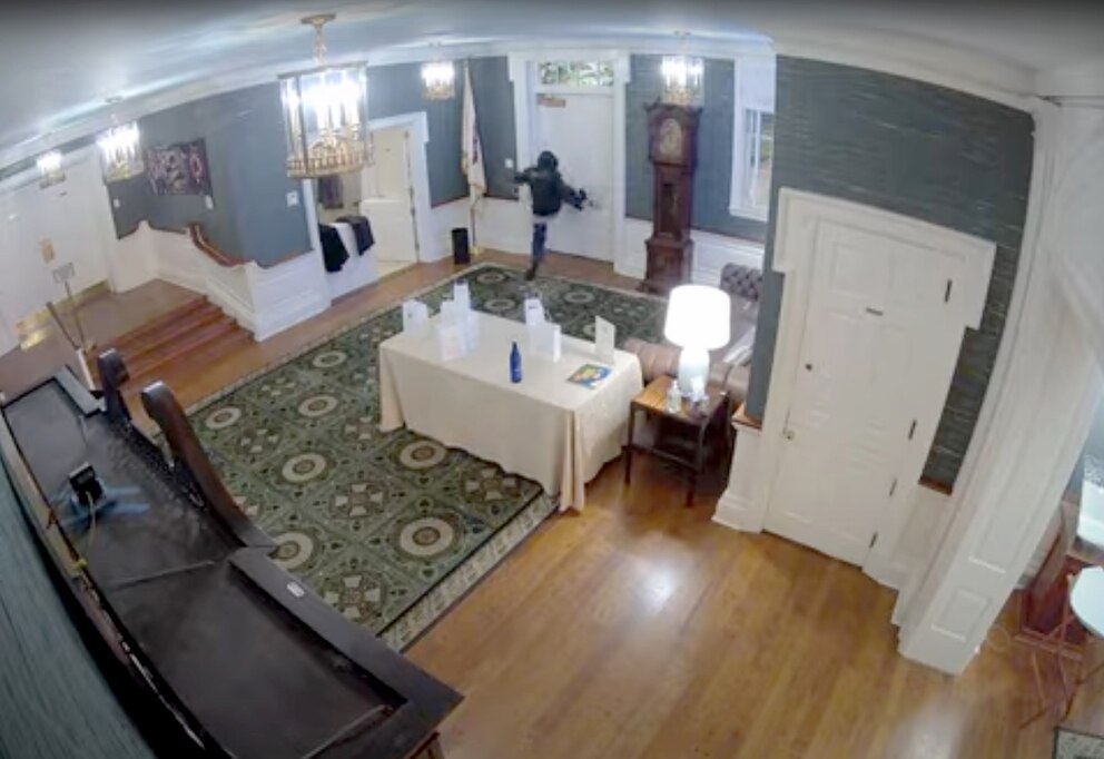 Video showed Balmer walking through the house, hitting at doors, "including a door leading to where the Governor’s family and guests slept, but could not break through," prosecutors said in a statement.