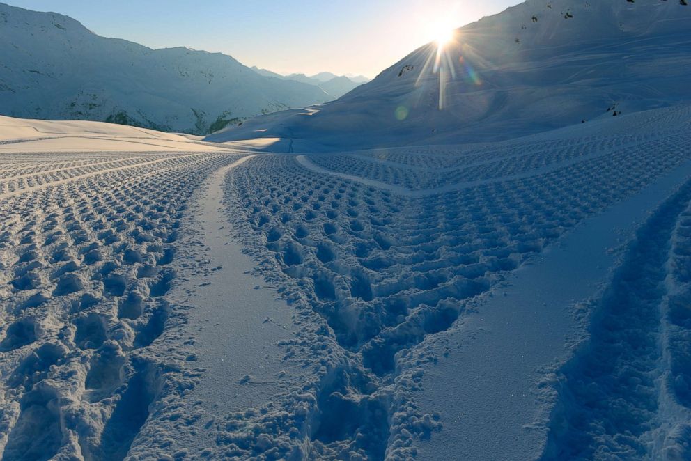 Beck used a ski pole to make light marks in the snow measuring the gaps between spaces as he moved and said that “just 6 inches” too wide or not wide enough would result in a noticeable error from above.