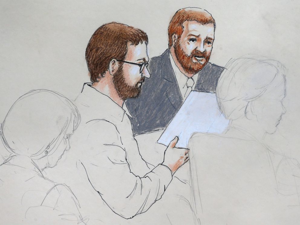 The defense showed clips of several of Holmes' meetings with doctors, as well as an interrogation by police immediately after the shooting when police placed bags on his hands. At the time, he told the officer that he thought the paper bag was there to hold popcorn, which defense attorneys tried to point to as an example of his state of mind that night.