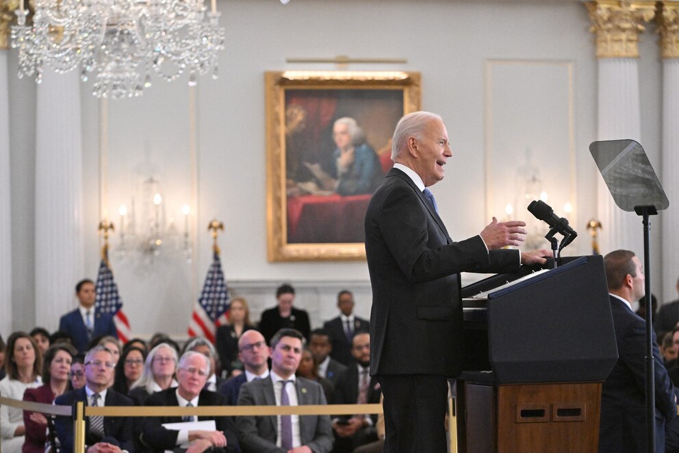 The president also focused part of his remarks on Russia's war in Ukraine, touting the administration's efforts to bolster Ukraine and global alliances in the process -- noting that 23 NATO countries are now spending 2% of the GDP on defense, up from nine when he took office.