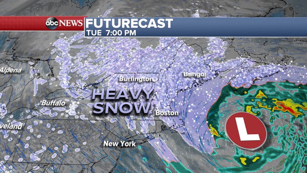 By morning the nor’easter will continue to pull away and the heaviest snow will be confined to northern New England.