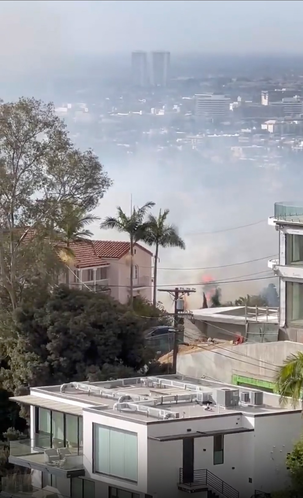 A separate brush fire threatened the West Hollywood area Tuesday morning, with crews working to contain the blaze on Sunset Boulevard between San Vicente and Crescent Heights.
