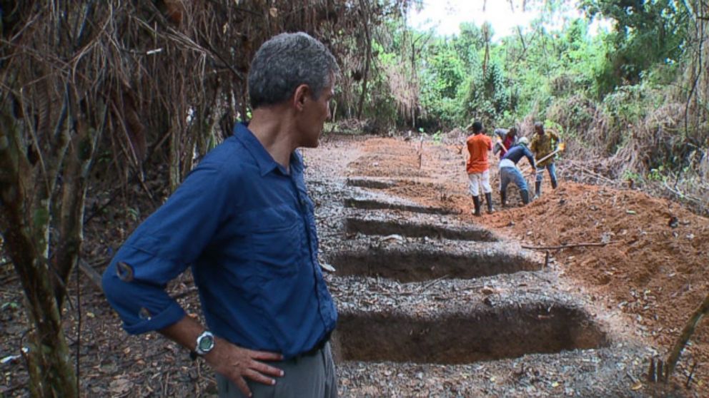 Dr. Besser looks on as workers dig graves outside an Ebola clinic in Liberia.