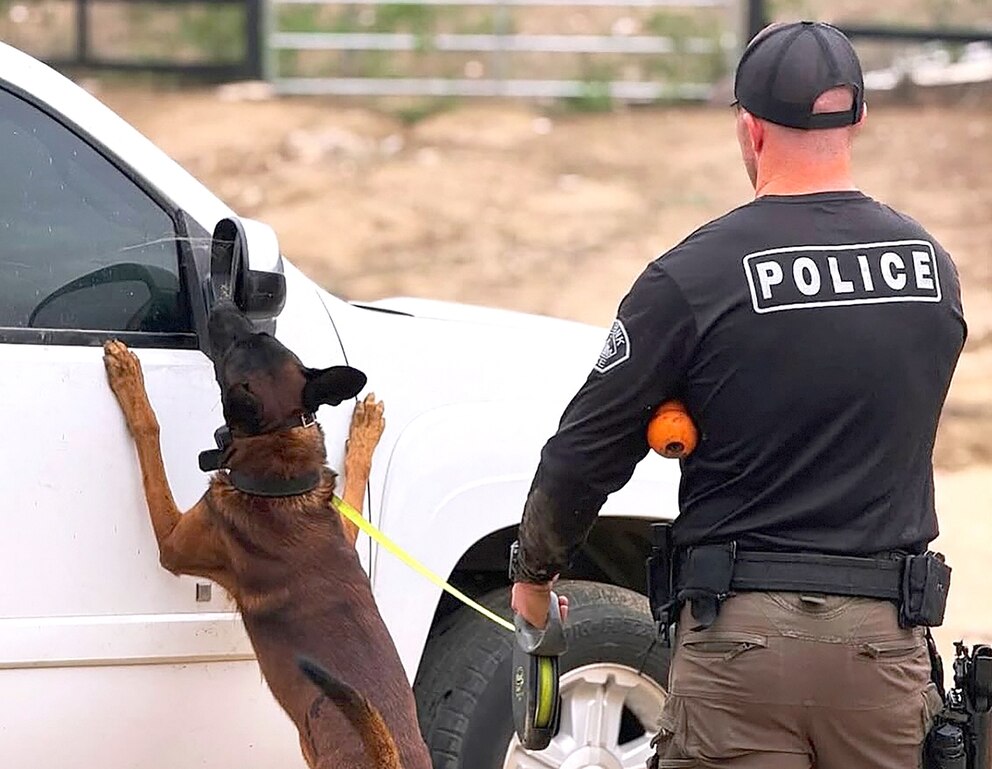 During the search, Spike located the suspect, who was armed with a handgun, officials said.