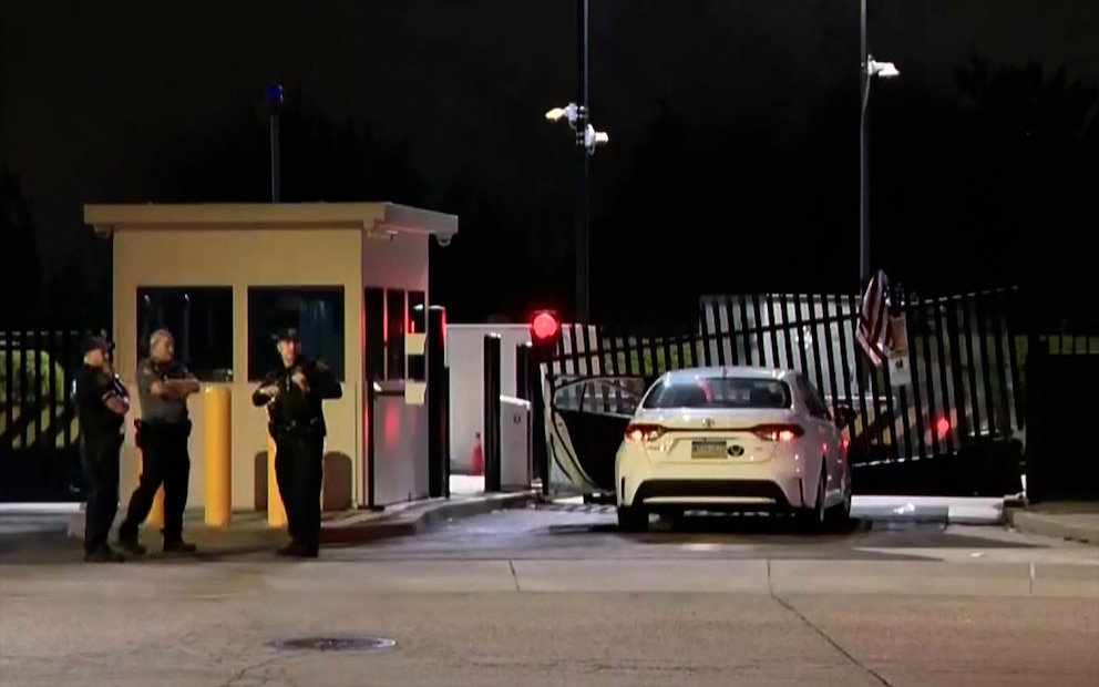 Images from the scene captured by ABC News affiliate WTAE appeared to show a white sedan sitting with a door ajar in front of a damaged metal gate near a security booth.