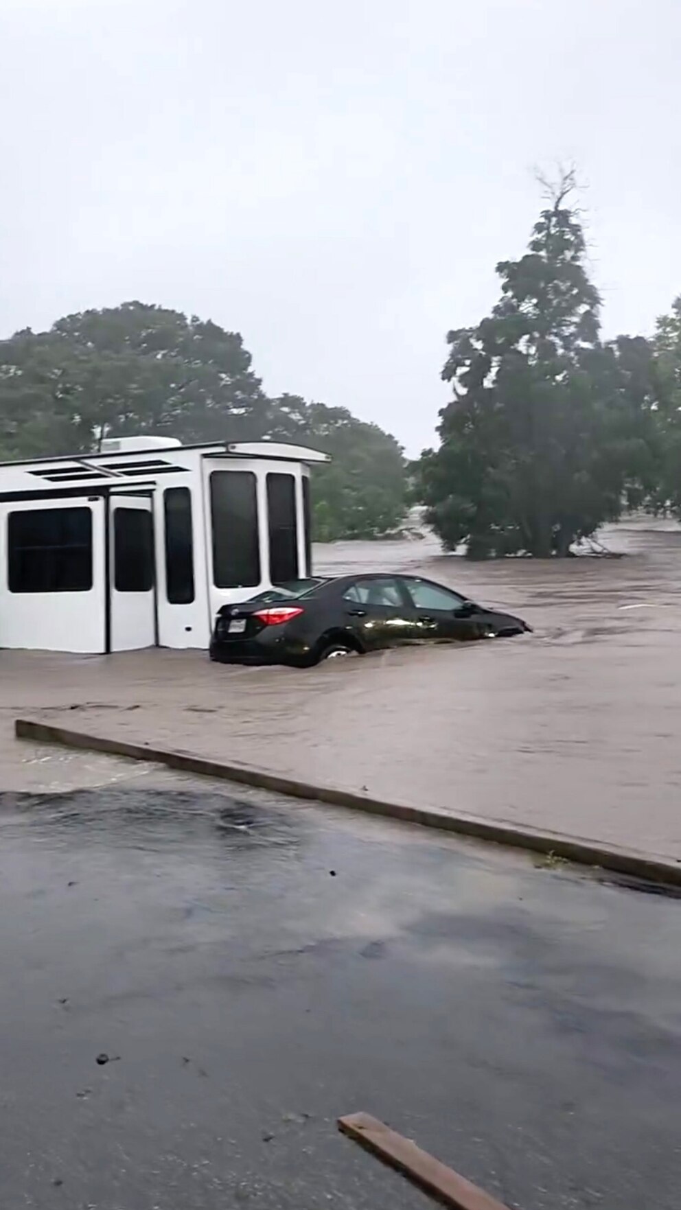 At one campground along the Guadalupe River, people filmed videos of themselves evacuating when they noticed flood water encroaching under their vehicle. Other videos showed cars and cabins submerged.