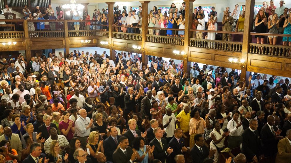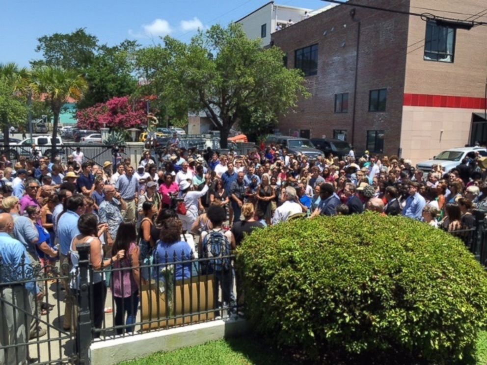 — -- Mourners gathered on a hot Charleston, South Carolina, day at a church prayer service, honoring the nine people killed when a gunman opened fire at another church Wednesday night.