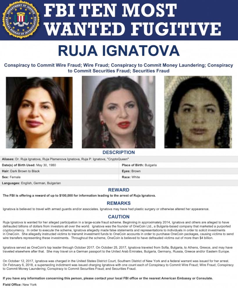 Ruja Ignatova, the so-called Cryptoqueen, has now been named a most-wanted fugitive by the FBI.