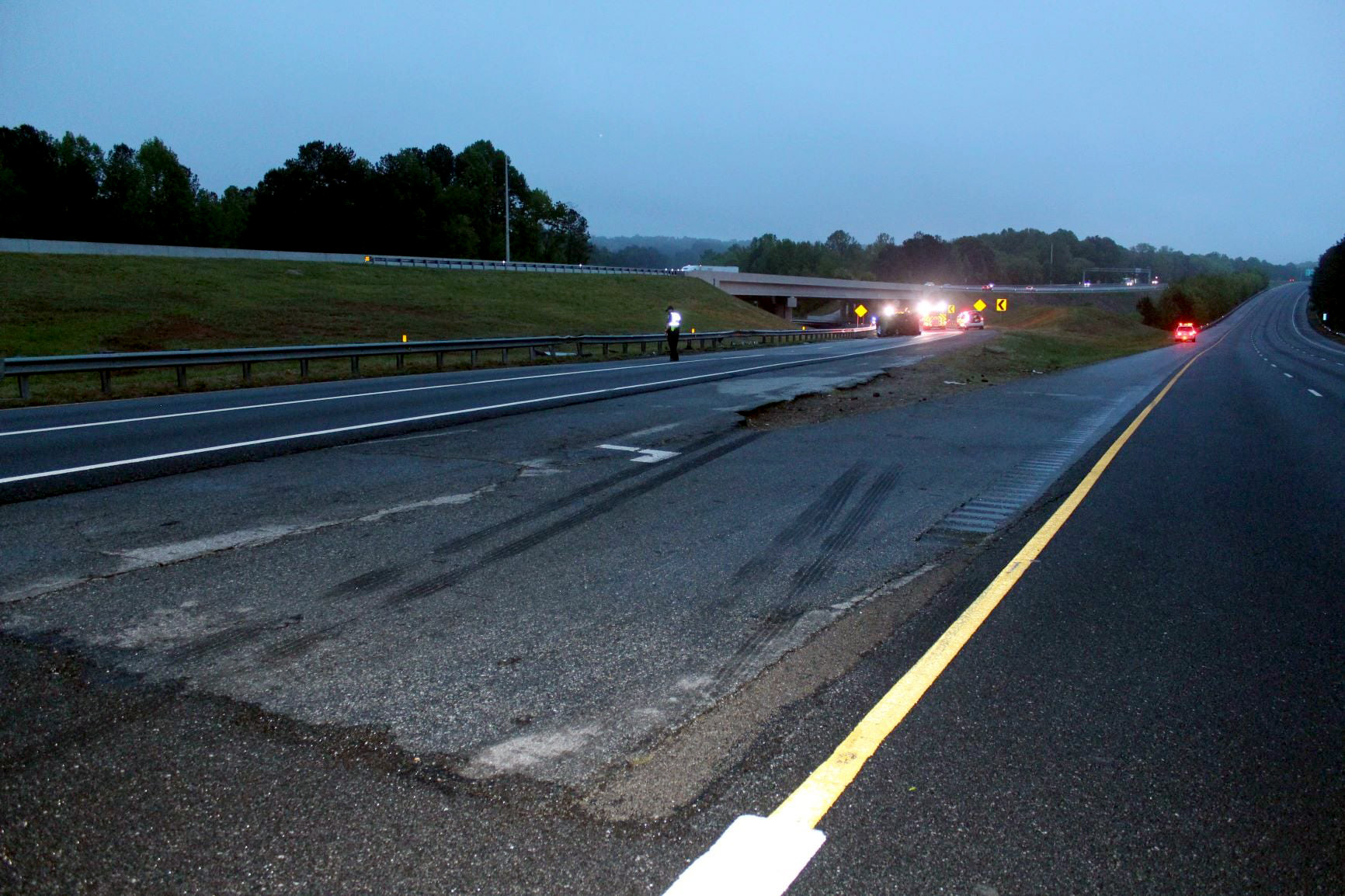 The Gwinnett County police and fire departments were dispatched to northbound Interstate 85 where it splits to Interstate 985 on Saturday just after 6:30 p.m. in response to reports of a vehicle that was on its side and engulfed in flames, authorities said.