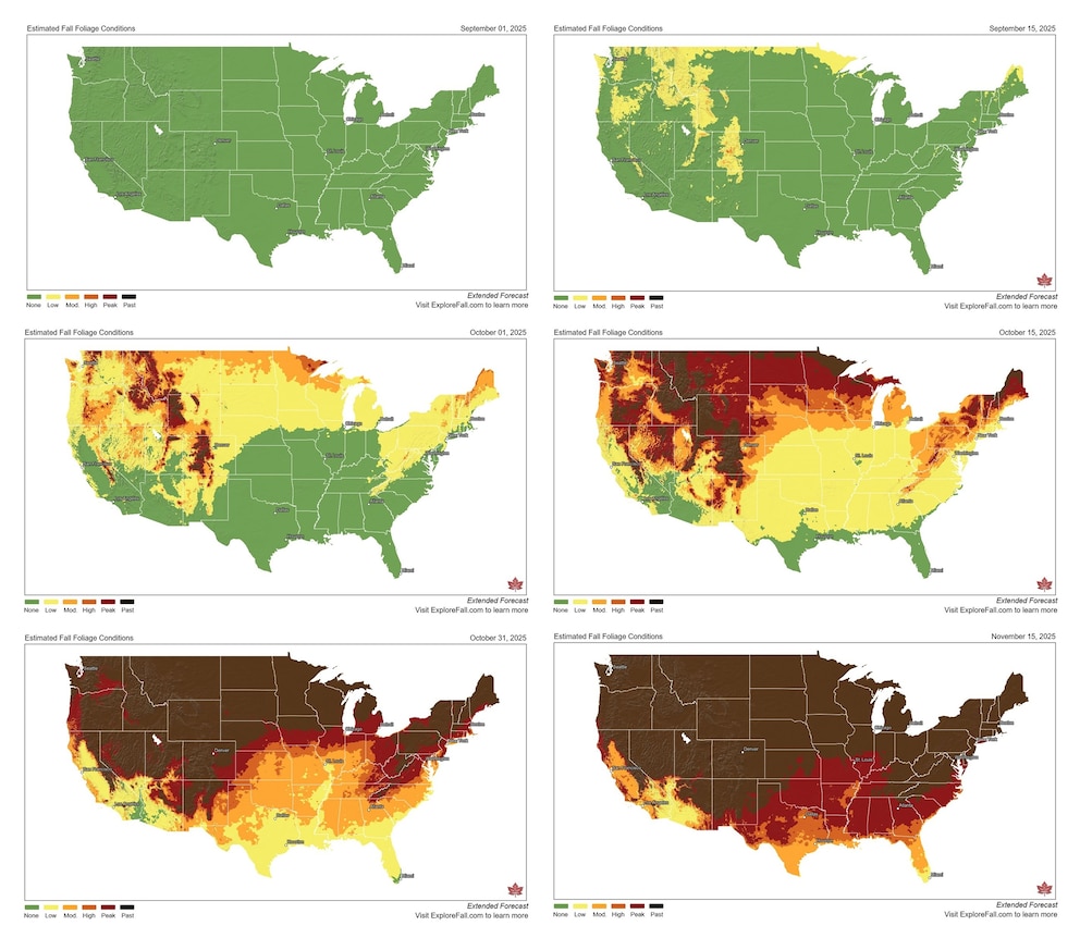 "We are tracking multiple areas of high stress in the foliage across the country, and a few regions of rapid-onset drought, which may quicken the onset of colors," said Peter Forister, Social Media Manager and Developer of Explore Fall.