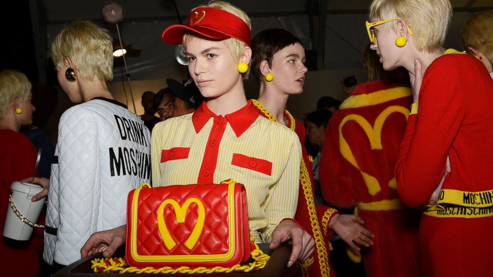 quicklist: 2title: McDonald's goes high fashion text: Created by fashion label Moschino , not actually by McDonald's, but brilliant branding for the company just the same. Last month, the Italian label showed on the runway several pieces inspired by the golden arches including a baggy red sweater dress with what resembles the golden arches logo and a $1,300 red-quilted leather purse, again with something similar to the arches. There's also a French fry iPhone case, a sweater and a backpack. media: 22879302