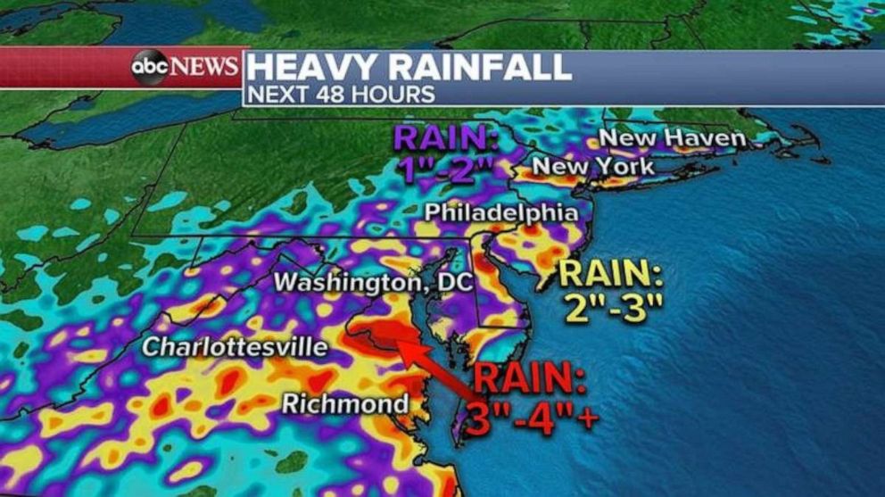 As a very slow moving cold front stalls in the area, more flash flooding is expected in the Mid-Atlantic states and some areas could see up to 4 inches of rain in a short period of time.