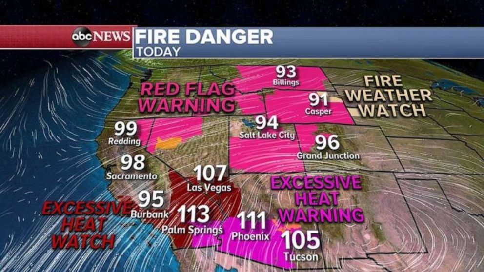Most of the western states from California to Montana are now on alerts for either fire danger, extreme heat or gusty winds.