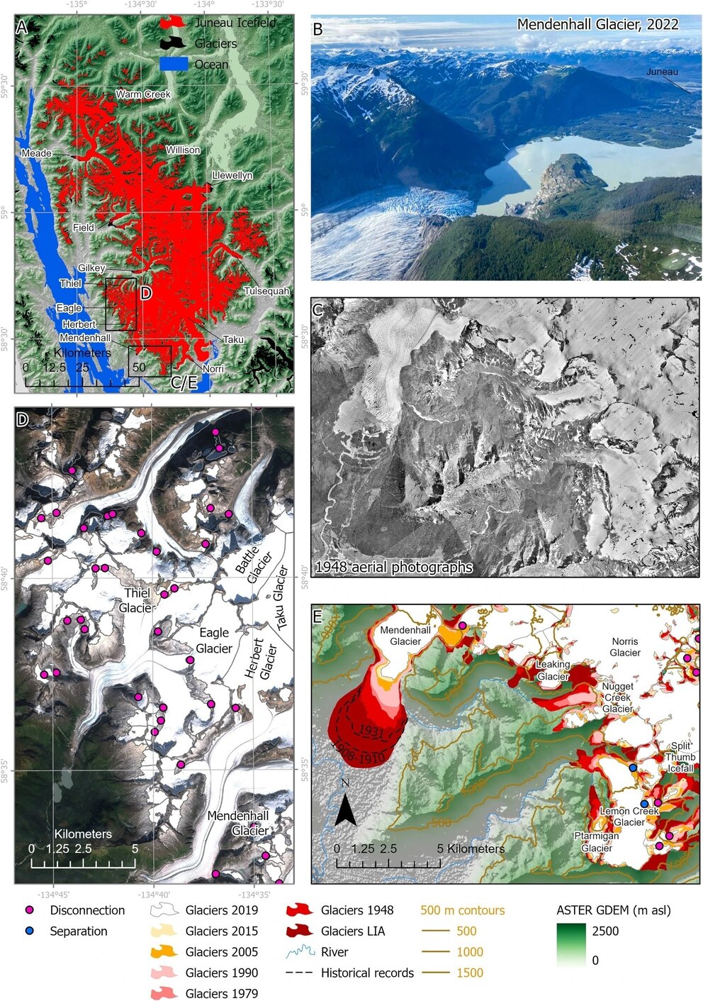 The study found that since 1770, 108 of Juneau Icefield's glaciers have disappeared completely and mapping in 2019 showed every glacier in the region has thinned.